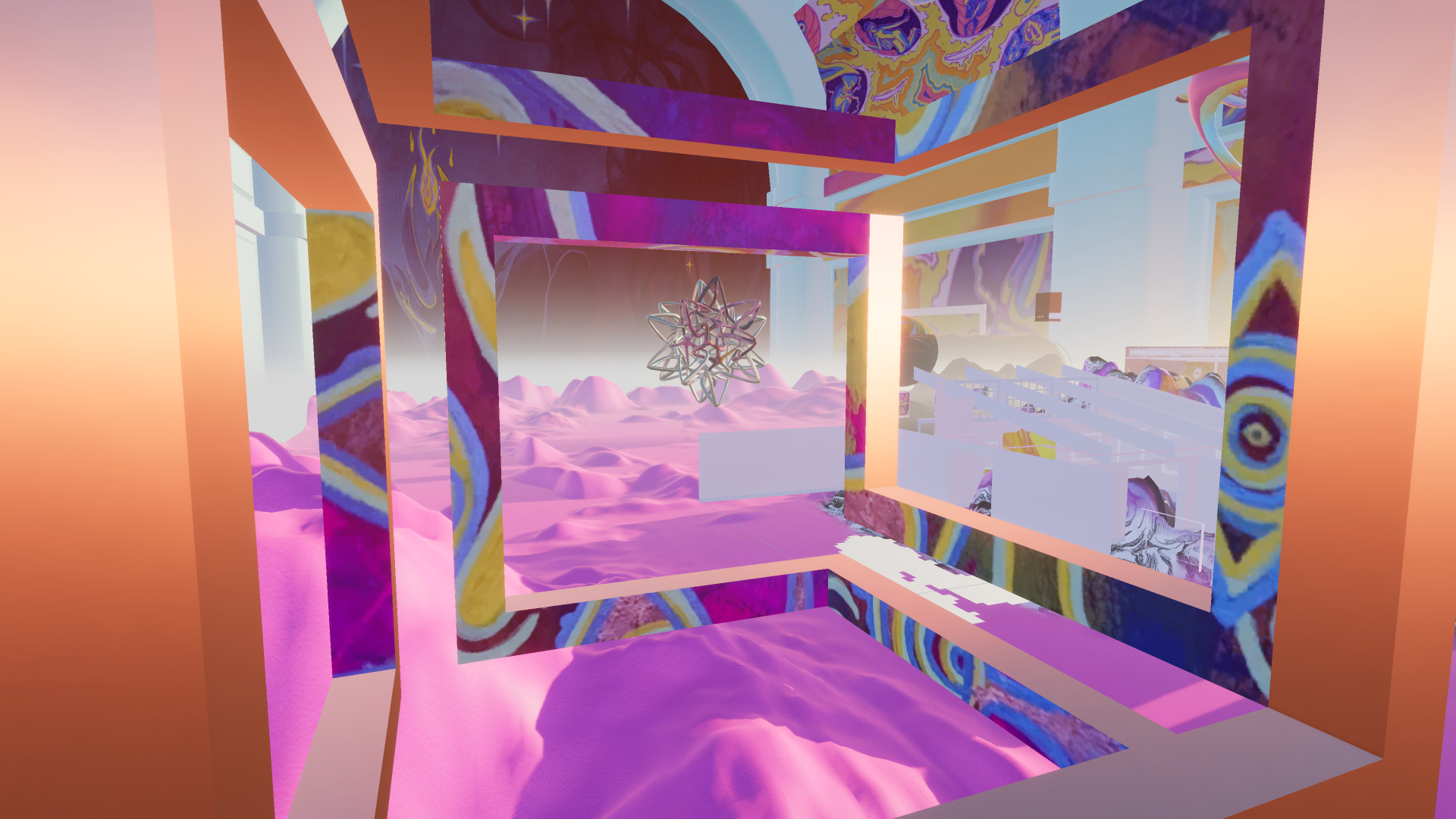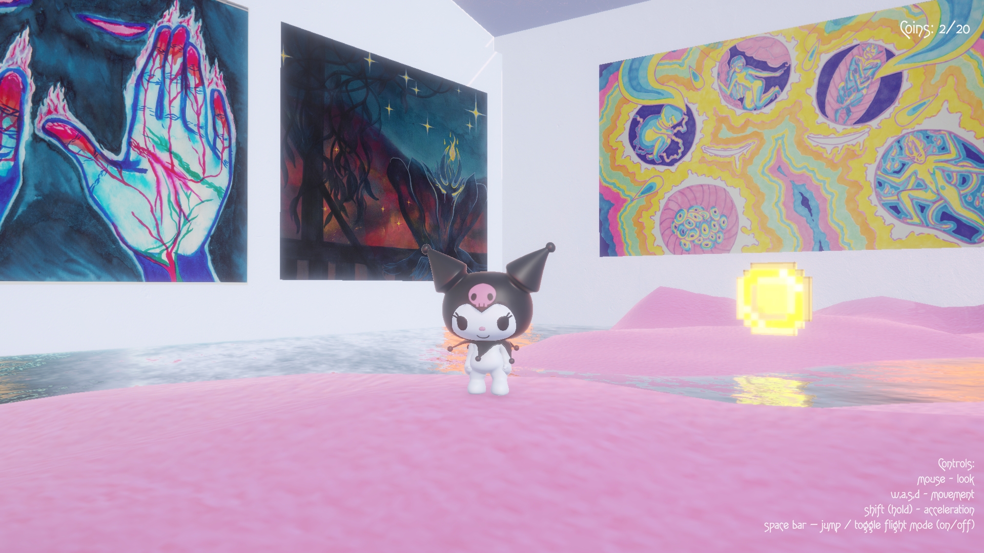 HALL 3 is both a virtual gallery and a work of game art. Here, paintings are closely intertwined with space, contemplation merges with flight, and the entire surrounding world becomes a frame for art objects.
